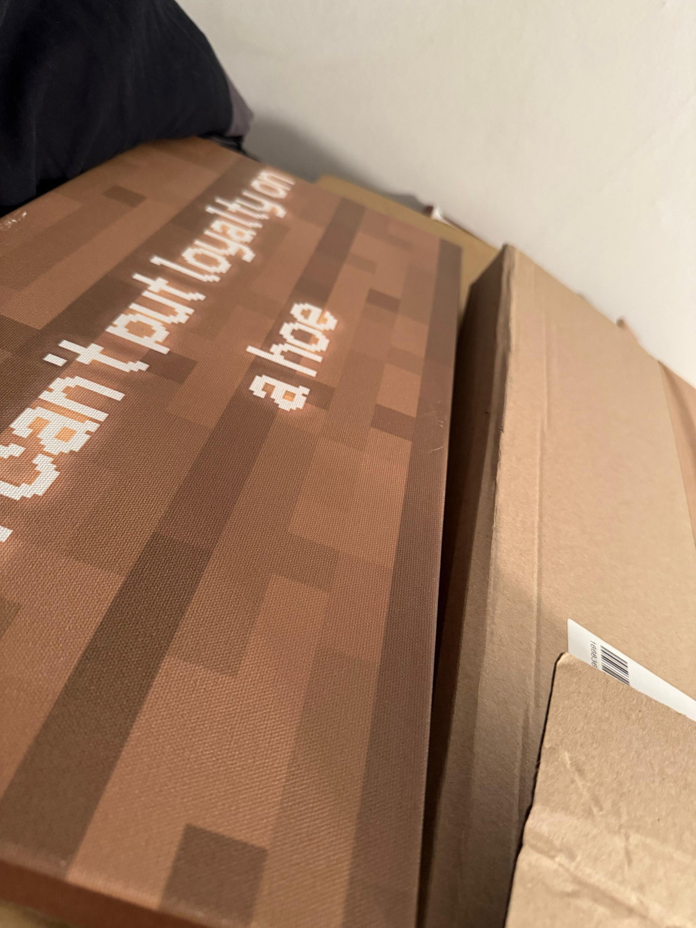 “I was worried it’d just be a flat print slapped on a canvas, but the texture and colors are SO well done. It actually looks 3D like in the game! Also, I asked a question about customizing the text and got a reply the same day — amazing support.”
