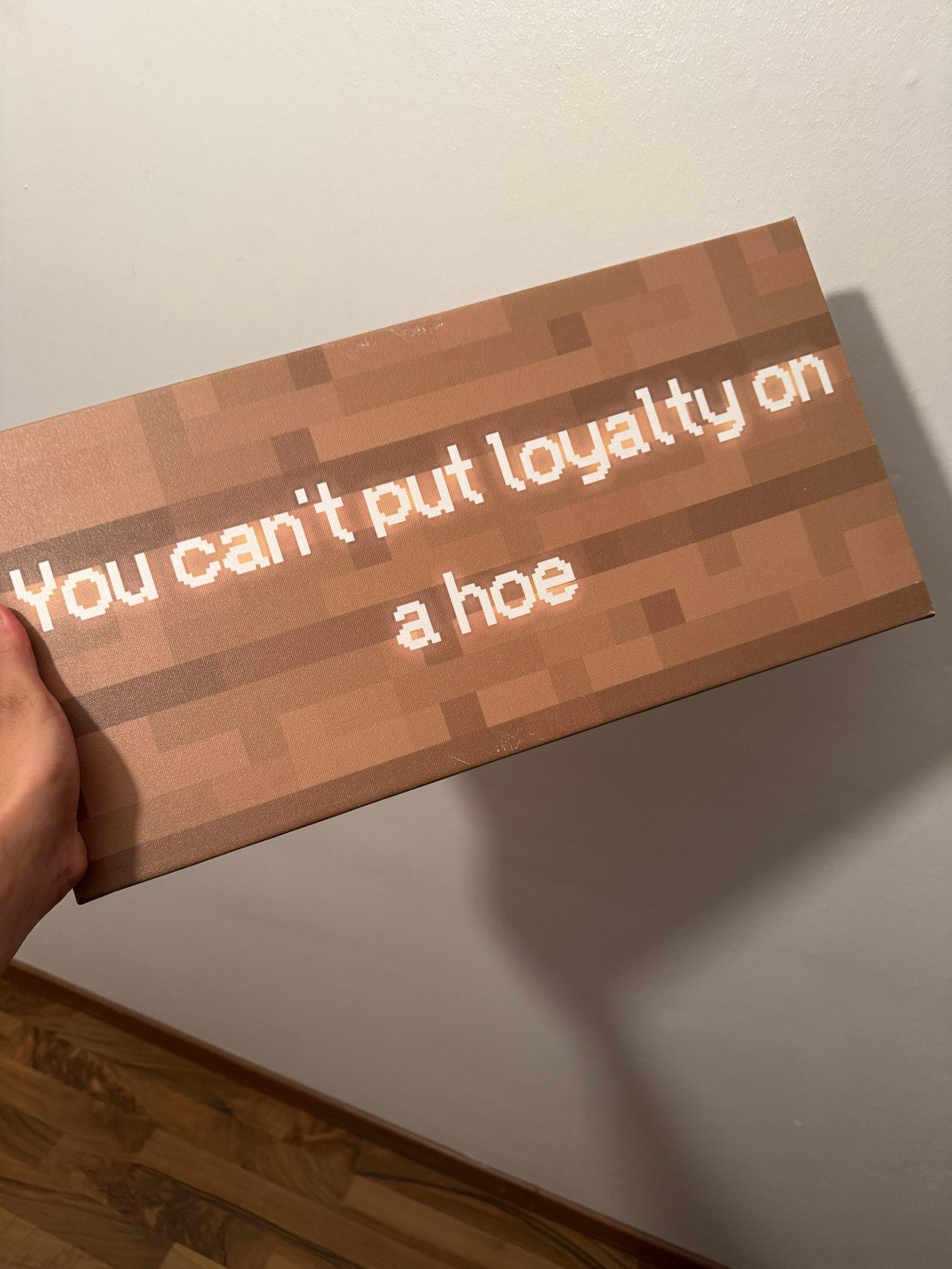 Bring your favorite game to life with this Minecraft-style wooden sign canvas, crafted to look like it came straight out of your pixelated world. Featuring authentic blocky text and real-world quotes, it’s the ultimate wall art for gamers, streamers, and anyone who speaks Minecraft.
